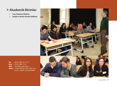 Akademik Birimler Tapu Kadastro Bölümü Emlak ve Emlak Yönetimi Bölümü Tel : (0312) 490 70 72-73 Faks : (0312) 490 77 67 Web : www.tkyo.gazi.edu.tr Adres : Yukarı Dikmen Mah. 648. Cad. No:53 06450 Oran/ANKARA www.gazi.edu.tr 79